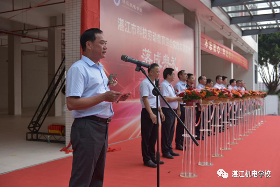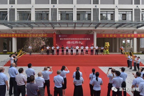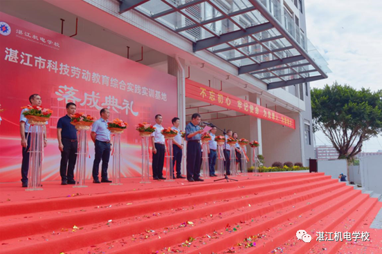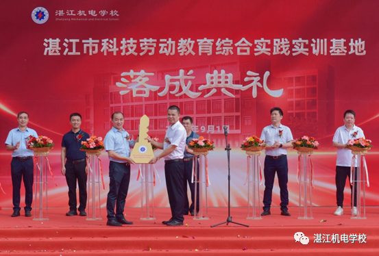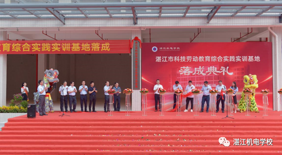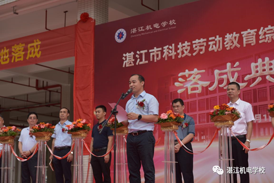 2023年9月1日上午,湛江机电学校举行“湛江市科技劳动教育综合实践实训基地”落成典礼,出席落成典礼的领导、嘉宾有市教育局黄贤伟处长、市代建项目管理中心肖雪强主任、市教育局职终科黄凯科长、市代建项目管理中心邹伟行科长、市曙光学校负责人沈世锋、廉江市第一建筑工程有限公司王搏振副总经理及我校领导班子成员,我校全体中层干部参加落成典礼,落成典礼由我校副校长陈桐主持。