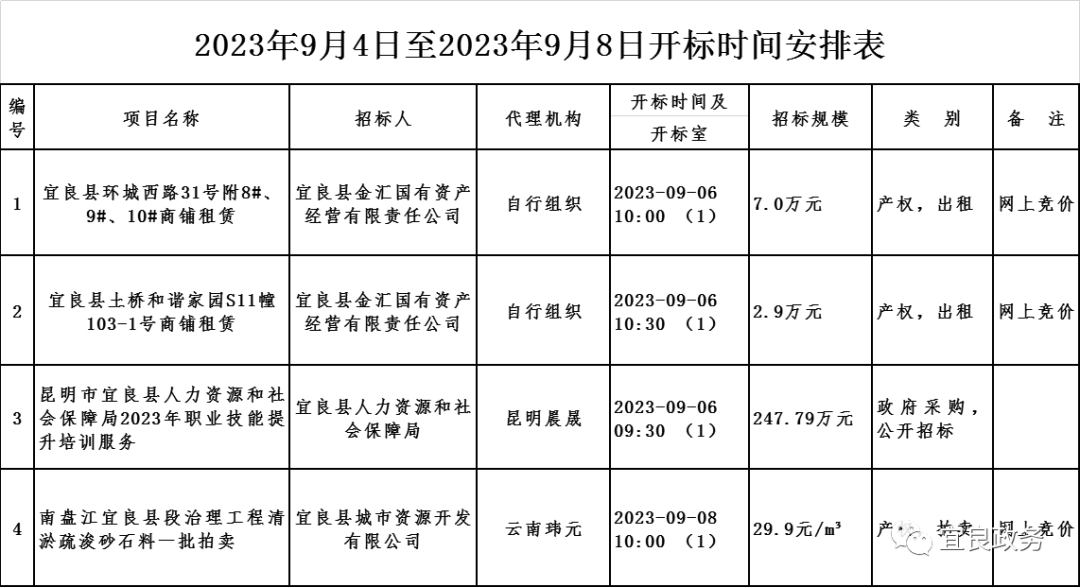 【招标投标】2023年9月4日至2023年9月8日开标时间安排表