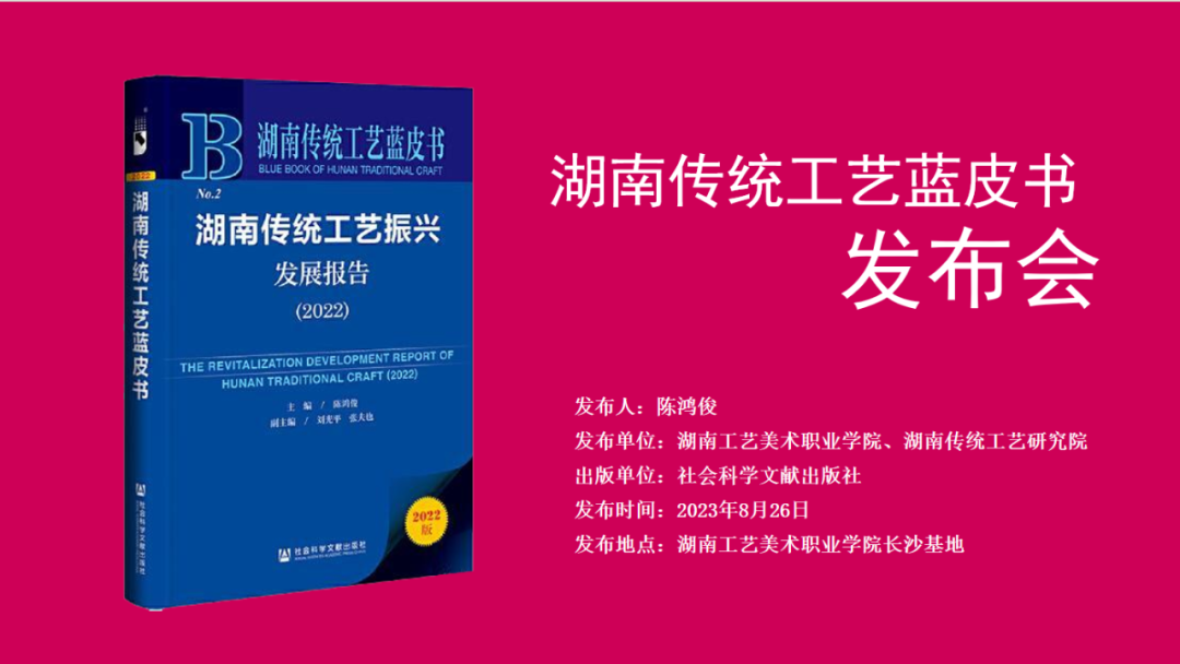 8月26日,第三届传统工艺振兴发展论坛在湖南工艺美术职业学院长沙基地举行,湖南传统工艺蓝皮书——《湖南传统工艺振兴发展报告(2022)》正式发布。本届论坛由中国工艺美术学会指导,湖南工艺美术职业学院主办。