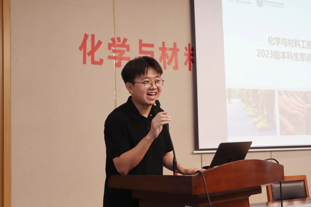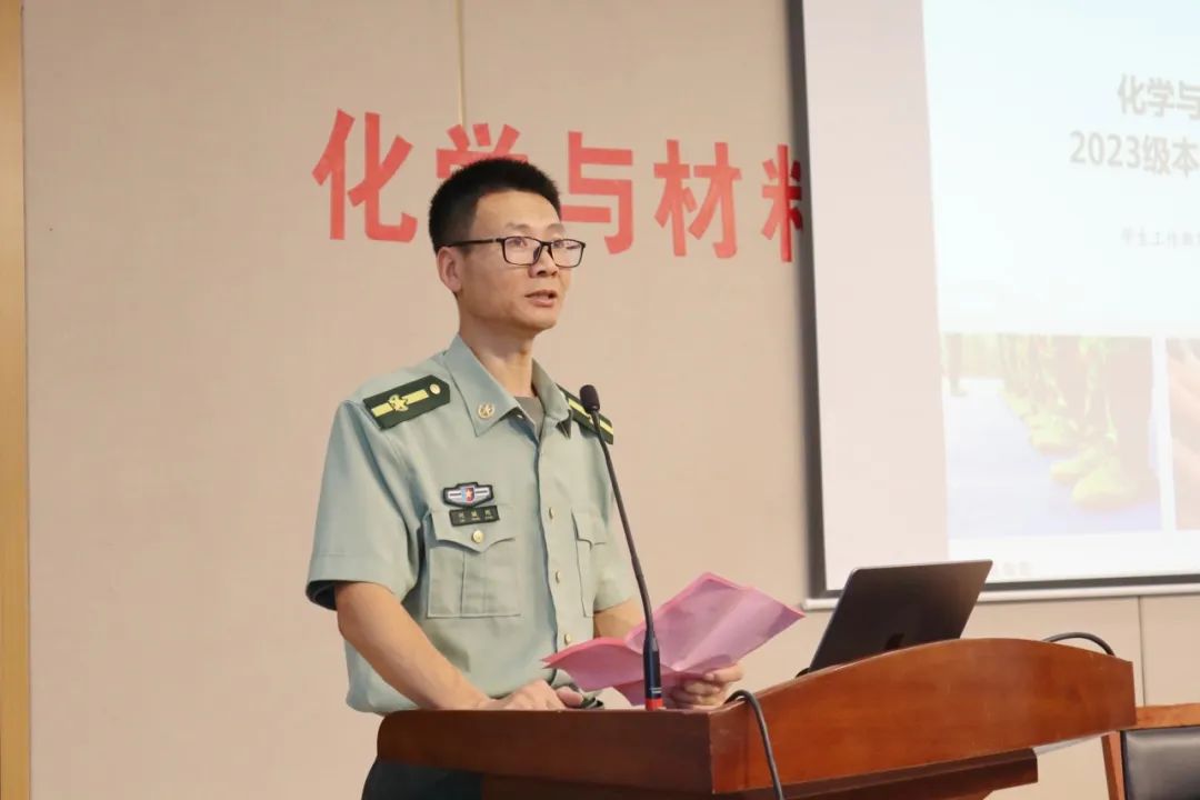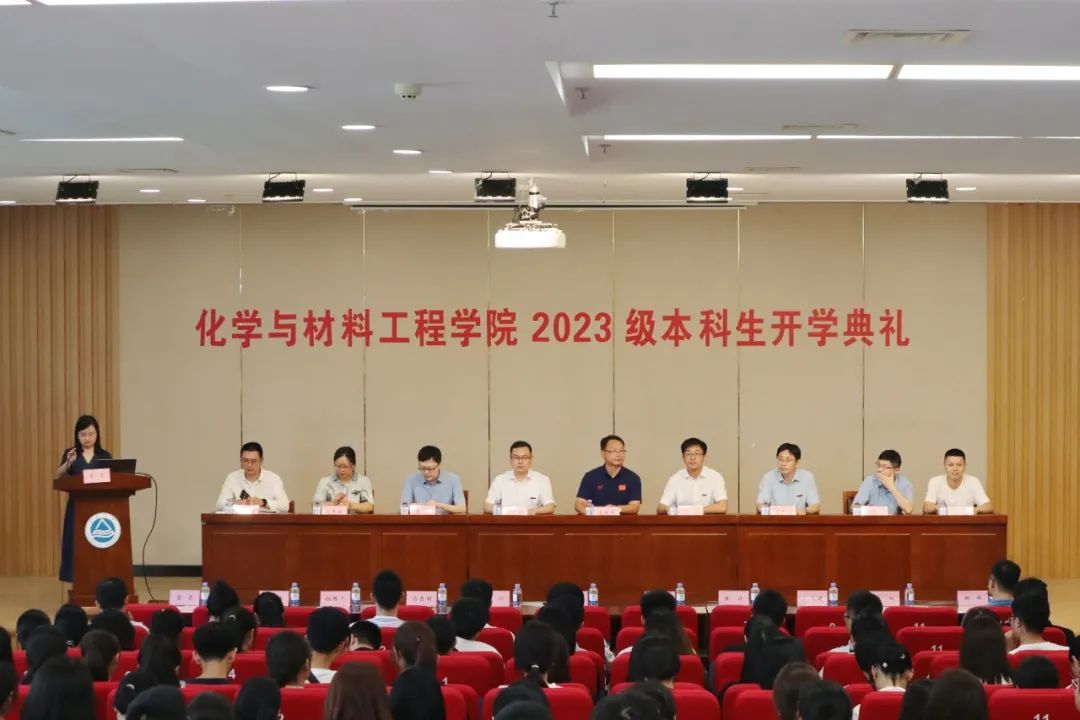 9月1日下午,化学与材料工程学院2023级本科生开学典礼暨军事训练动员会在图书馆三楼会议室举行,学院党委书记潘庆伟、院长刘仁、副院长顾志国、副院长马丕明、副院长王靖、各系部主任、新生班主任、辅导员及2023级本科新生出席活动。典礼由学院党委副书记、副院长董霞主持。