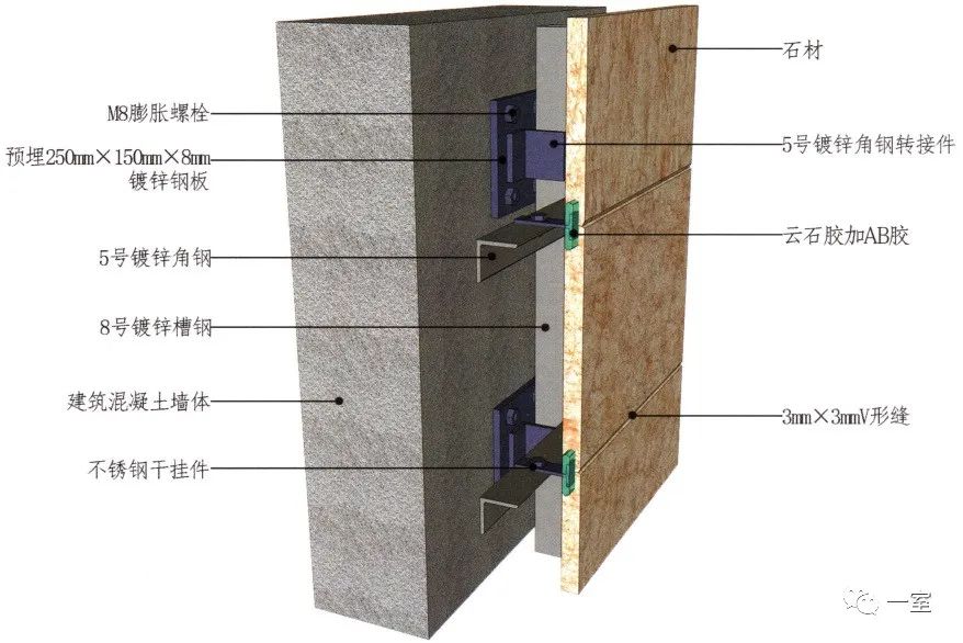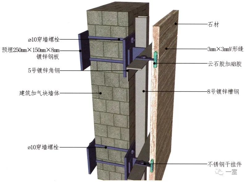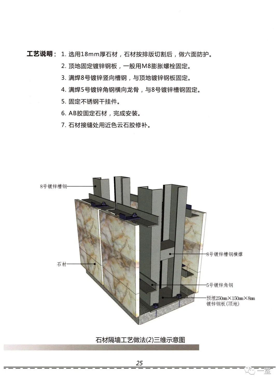 石材上墙也是现在比较流行的做法,石材干挂工艺是常用施工工艺,相较于传统湿贴工艺来说,能更好的避免后期出现空鼓、开裂、脱落等现象。