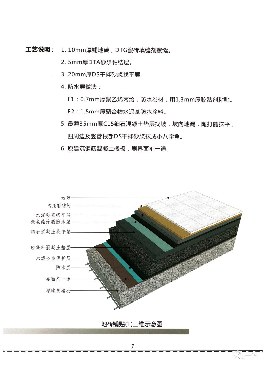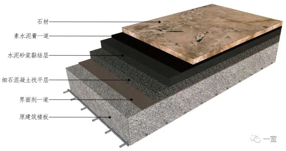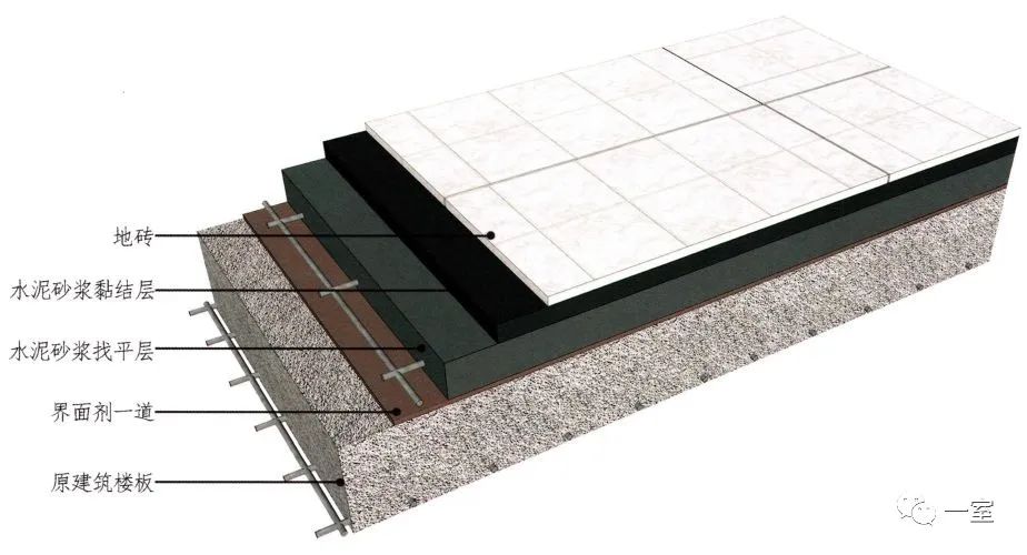 地面材质不同,在施工铺贴工艺上也不相同。地面地砖与石材的铺贴工艺大致相同,在卫生间进行铺贴时,还需加入防水层。