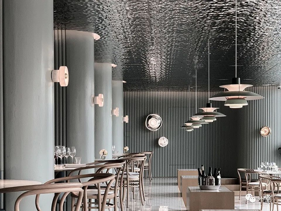 不锈钢吊顶在整体空间中效果也非常优秀,尤其是近几年的水波纹不锈钢吊顶,在家装公装中都能见到。