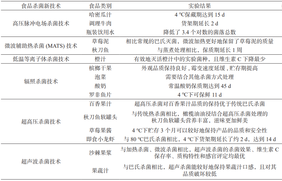 非热杀菌技术能够在较低温度下灭活微生物,但 这些过程需要较高的处理强度。为了在较低的工艺强 度下增强抗菌效果,可以将非热技术与传统的保存方 法、抗菌剂或其他非热处理相结合。