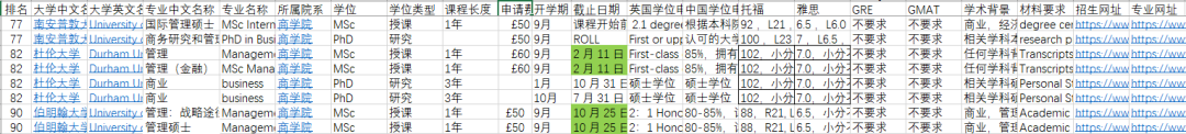 ✔ 2023年 英研【MBA专业】40个授课类硕士项目申请信息(Excel版)