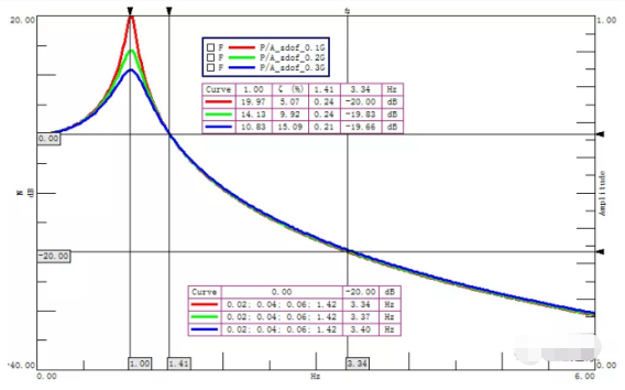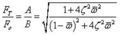 通过上面分析可以发现,虽然主动隔振和被动隔振的原理有所不同,但最后得到的隔振系数的表达式是相同的。因此,隔振设计准则:只有频率比大于根号2时,才能起到隔振的效果。传递到基础上的合力与振源力幅比为隔振系数:
