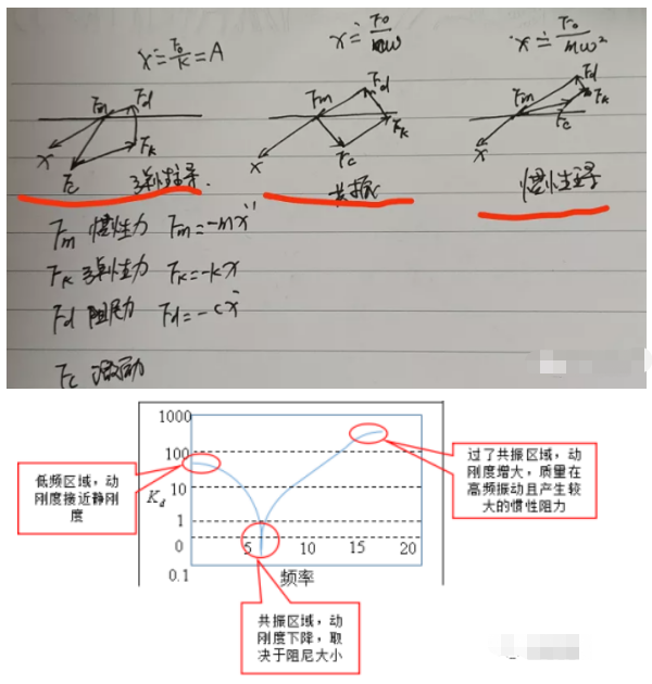 三条线分别是刚度线、共振线及质量线,即分别为弹性主导、阻尼主导及惯性主导。
