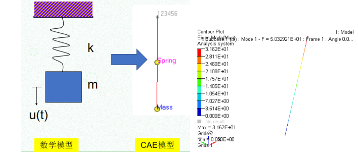 3、对于单自由系统无阻尼系统,如何建立仿真模型与数学模型之关的互相印证。假设该单自由无阻尼振动系统的质量m为1.0kg,系统的刚度k为100N/mm。