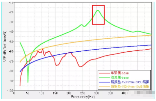 优化方向可以是提升动总侧支架的安装点刚度,或降低隔振垫的刚度。但是需要结合整个系统的性能要、限位、空间布置等综合考虑,一般建议提升安装点的刚度来解决。