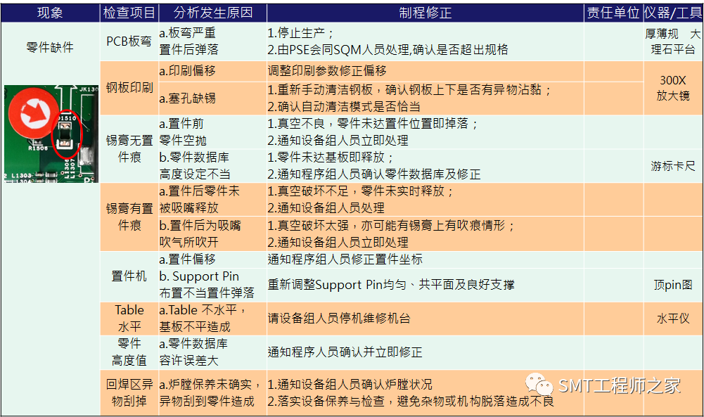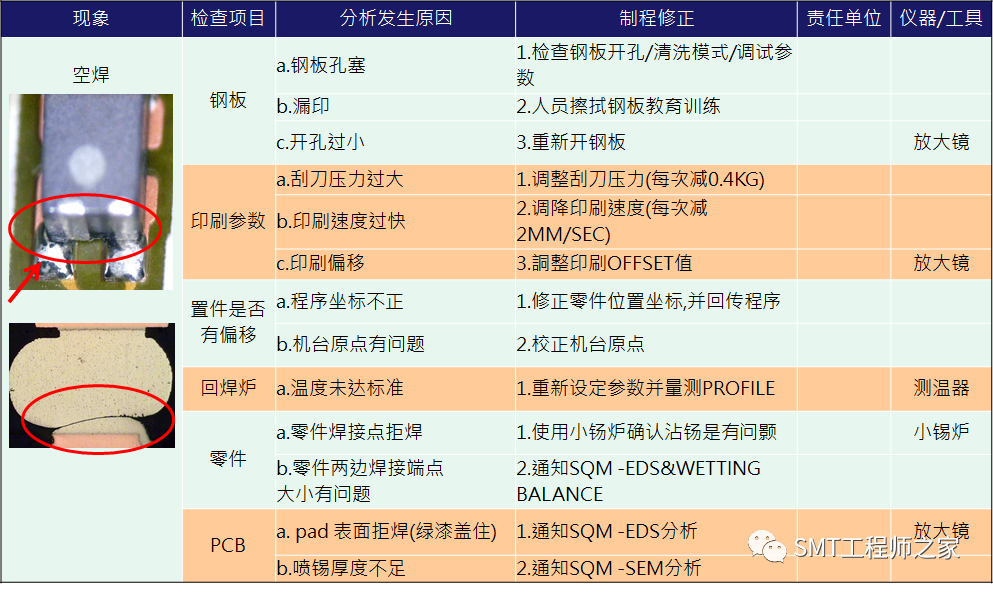 11、SMT零件空焊(Open)不良分析与处理如下图表