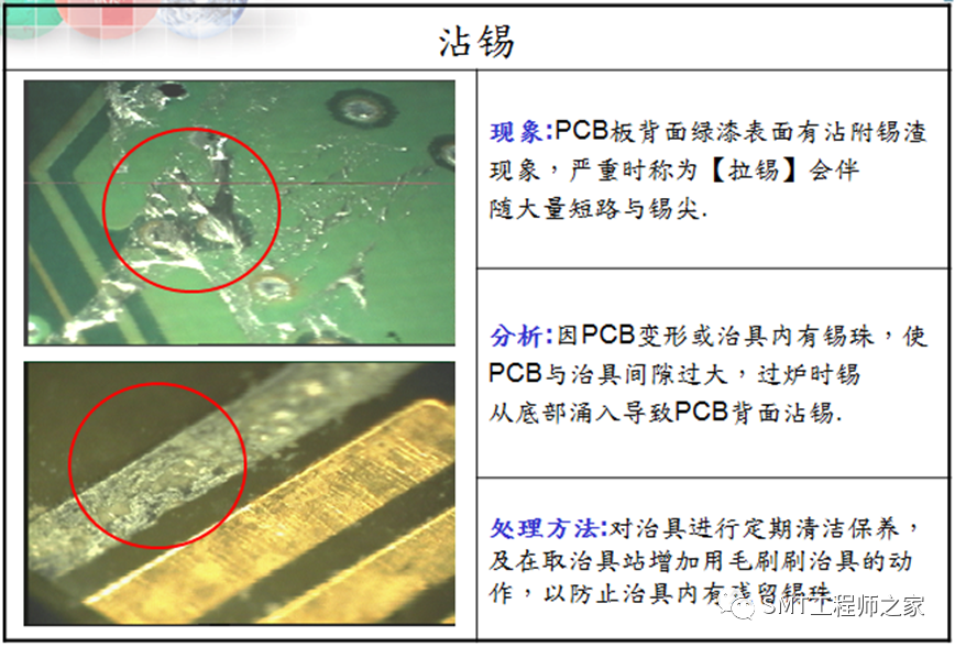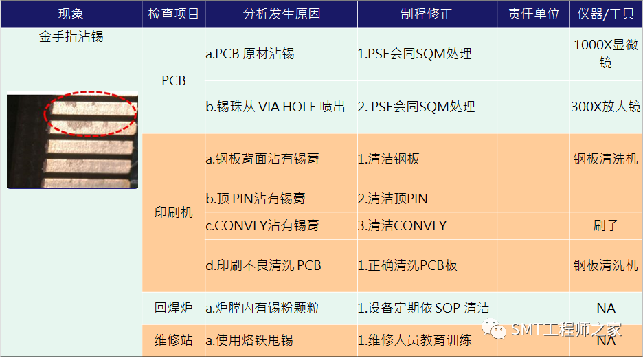 6、金手指沾锡或者污染不良分析与处理如下图表