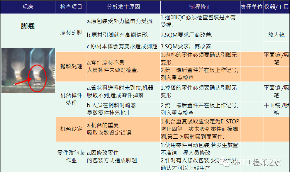 6、DIP高翘(浮高)不良分析与处理如下图表