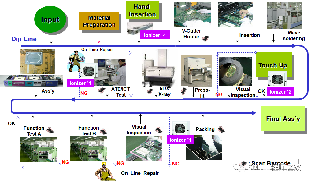 DIP是将双列直插式封装的电子元器件通过人或者设备装入PCB板上的零件孔内,再经过喷Flux及经过波焊焊接等工艺制程安装到PCB板上的技术.
