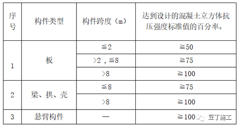 ⑴ 铝模早拆体系的非承重早拆模板拆除时间不早于24小时,承重支撑拆除时的砼强度要求如下: