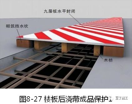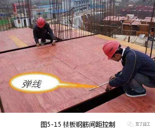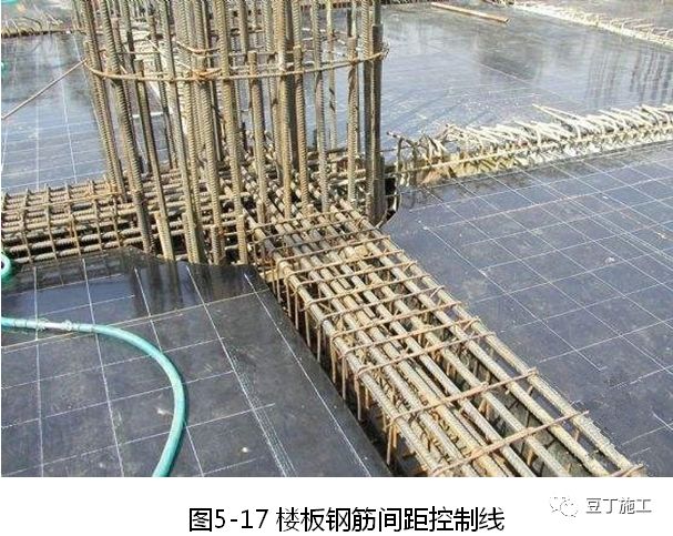 ⑼ 面筋及底筋之间应按照设计间距放置钢筋支撑或马凳筋,并与板筋扎牢。板面搭设规范的马道,注意成品保护。