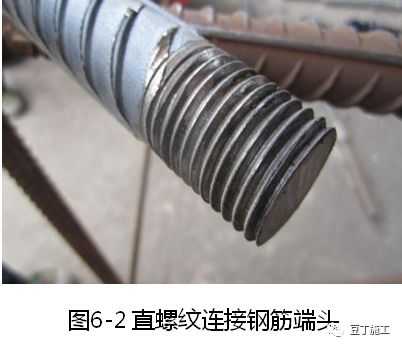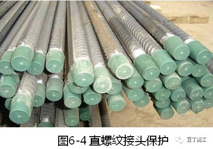 ⑷ 钢筋切口端面应与钢筋轴线垂直,不得有马蹄形或挠曲。钢筋丝头的螺纹应与连接套筒的螺纹相匹配,丝头加工完毕经检验合格后,应立即带上丝头保护帽或拧上连接套筒。