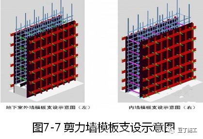 ⑶ 墙柱侧模采用背楞和对拉螺杆加固,最底一层背楞距板面间距≦300,两道背楞间距≦700 。层高2.8-3m的墙柱:外墙柱必须设不少于5道背楞,内墙柱必须设不少于4道背楞。