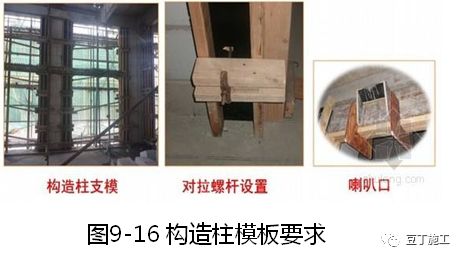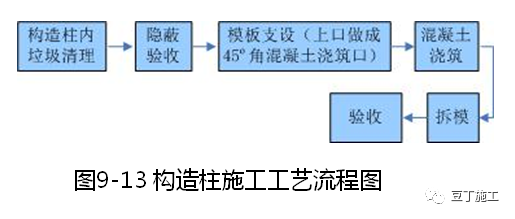 ⑹ 构造柱底部先铺设一层与混凝土同标号厚的 10~20 mm 的水泥砂浆。构造柱模板顶部宜设置簸箕口,高出梁下口50mm。
