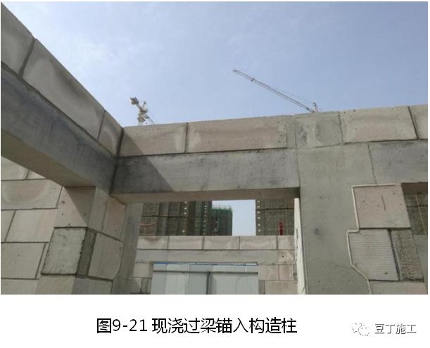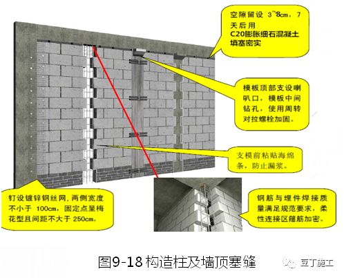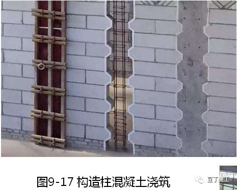 ⑵ 钢筋混凝土构造柱和底部框架一抗震墙房屋中的砌体抗震墙,其施工应先砌墙后浇构造柱和框架梁柱。