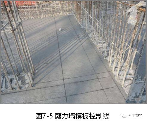 ⑸ 模板支撑牢固,尺寸准确,线条顺直。