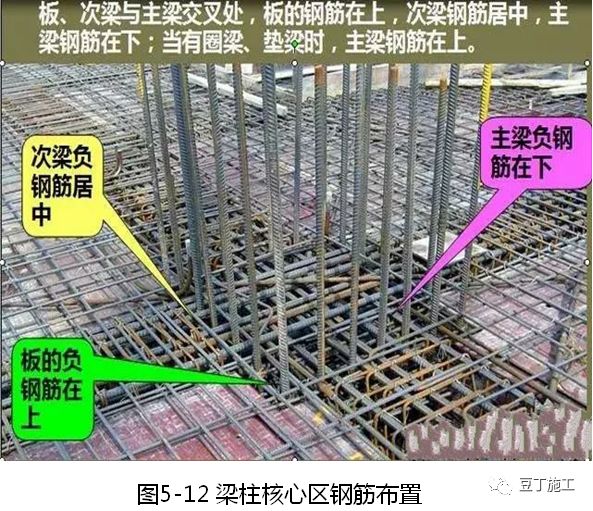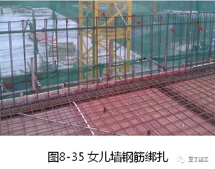 ⑹ 绑扎板筋时用顺扣或八字扣,除外围两根钢筋的相交点应全部绑扎外,其余各点可交错绑扎(双向板相交点需全部绑扎);负弯矩钢筋每个交点均要绑扎,其余与底筋相同。