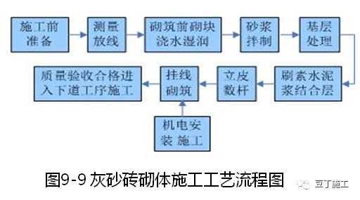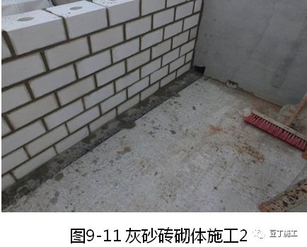 ⑼ 砌块墙体内后埋暗管、暗盒等,应在砌筑砂浆达到一定强度后进行,并在墙体抹灰前完成。