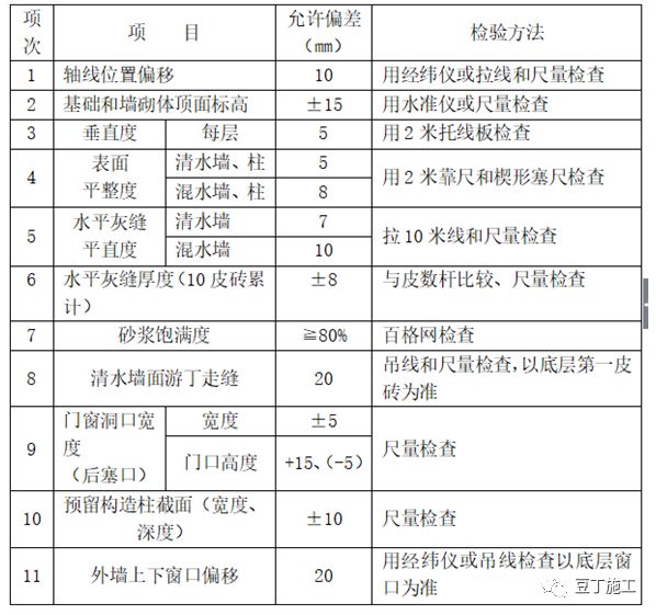 ⑻ 砌体质量的允许偏差及检查方法同加气块。