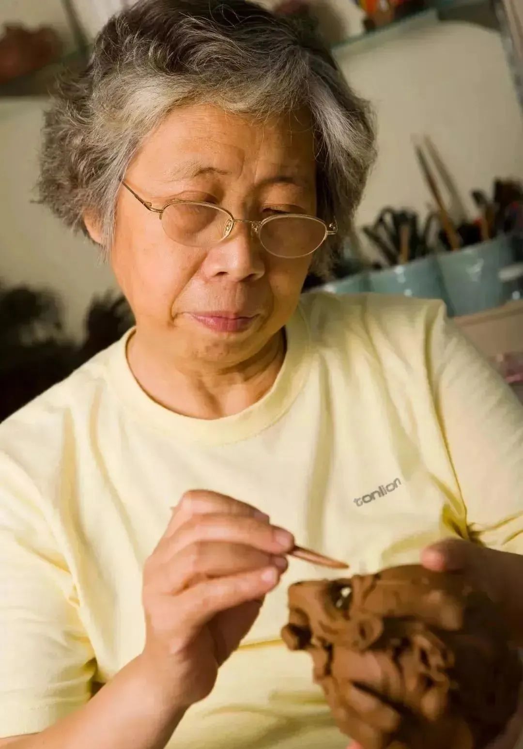 顾景舟(1915-1996),原名景洲。别称:曼希、瘦萍、武陵逸人、荆南山樵。自号壶叟、老萍。中国工艺美术大师,被海内外誉为“壶艺泰斗”,作品为海内外各大博物馆、文物馆收藏。蒋蓉(1919- 2008),别号林凤,江苏省宜兴市川埠潜洛人。1995年被授予“中国工艺美术大师”称号。蒋蓉大师是紫砂七老之一,中国工艺美术大师,紫砂七老中唯一一位女艺人,她也是中国紫砂工艺史上第一位女工艺美术大师,曾任中国美术学会会员,中国工艺设计协会委员,江苏省工艺美术协会名誉理事等职务。蒋蓉技术精湛,她的作品生动具真,别树一格,在中国紫砂工艺史上获得了杰出成就,曾在全国工业会议上评为“特等奖”,并为周总理出访东南亚等国家制作礼品。并被授予全球中华文化艺术薪传奖、中国工艺美术终身成就奖、中国陶瓷艺术、设计、教育终身成就奖1937年生于宜兴蜀山紫砂世家,1954年师从紫砂陶刻名艺人任淦庭先生,1955年入蜀山陶业合作社(宜兴紫砂工艺厂前身),1958年参加中国民间雕塑研究班学习,后转入泥人张(张景祜)工作室学习彩塑。1995年创办长乐陶庄。有《中国紫砂》、《大师说器--徐秀棠说紫砂》、《紫砂工艺》、《宜兴紫砂紫砂工艺图述本》等多部专著为上海古籍出版社、上海辞书出版社、浙江人民出版社、上海书画出版社等出版发行。被载入英国剑桥《世界名人录》,为“世界名人协会”终生会员1940年出生于江苏宜兴,1958年进宜兴紫砂工艺厂,师从著名老艺人吴云根学习紫砂技艺。五十余年来,潜心钻研紫砂壶艺,先有“吕竹”之称,后博采众长,大胆创新,形成了具有鲜明特色的“吕氏壶艺”。其开宗立派的“吕氏绞泥”技法,改变了紫砂陶艺原有的内涵和形式,被誉为“壶艺魔术师”。是传统紫砂艺术在20世纪突起的又一奇峰。被载入英国剑桥《世界名人录》,为“世界名人协会”终生会员。汪寅仙(1943-2018),生于江苏宜兴丁山,中国工艺美术大师、中国陶瓷艺术大师、研究员级高级工艺美术师、第一批国家级非物质文化遗产 " 宜兴紫砂制作技艺 " 代表性传承人。1932年5月出生于宜兴紫砂陶业世家,于上世纪五十年代初拜壶艺泰斗顾景舟为师,是顾景舟的第一个入室大弟子。徐汉棠艺术功力深厚,紫砂传统技艺掌握全面,创作设计能力强,在泥料、造型、装饰以及成型工具等方面都有独到的见解。凡壶、盆、瓶、文具、杂件、捏玩,花式类型上光素方圆、花货筋瓤、竹货树桩等都有涉及。创作设计紫砂作品三百多件套,风格洗练精巧、端庄秀丽,蜚声海内外。无论是素净的传统器形,还是创新的形制,均造型简洁端庄,线条周正流畅,手法干净利落,气势雄厚健伟,显示出陶艺大师的风范。谭泉海(1939-2017)中国工艺美术大师、中国陶瓷艺术大师、研究员级高级工艺美术师、中国民间文化杰出传承人、中国工艺美术“终身成就奖”获得者、江苏省徐悲鸿研究会高级研究员,第七、八、九届全国人大代表。1939年出生在江苏宜兴,1958年进入宜兴紫砂工艺厂,师从陶刻巨匠任淦庭先生学艺。在五十余年的紫砂艺术生涯中,继承传统、勇于创新,书画、刀笔俱佳,形成了“刻刀吐墨韵、砂陶飘书香”的个人艺术风格。作品《百寿瓶》(合作)获德国莱比锡“国际博览会”金奖,作品《松鹰》、《群马》特大艺术盘和《江南春》壶被北京故宫博物院收藏;《鱼跃壶》被中南海紫光阁收藏;《什锦文化圆筒》被中国美术馆收藏。1937年出生于江苏宜兴,1955年进紫砂工艺厂师从顾景舟大师, 1958年毕业历任紫砂厂技术辅导、车间主任、厂技术科长、技术生产副厂长、总工艺美术师。作品执着追求突出文化主题和紫砂陶的艺术风格。夫妇合作“竹简茶具”荣获1984年春德·莱比锡国际博览会金质奖。1943年生于江苏宜兴丁蜀镇,1958年进宜兴紫砂工艺厂。先后师从王寅春、顾景舟大师习艺。退休后定居北京。40余年的创造生涯,使她在紫砂艺术上取得了显著的成绩。1945年出生于宜兴陶业世家。1958年进宜兴紫砂中学读书学艺,启蒙老师潘春芳教授,转入紫砂工艺厂后,师承著名老艺人陈福渊,后得当代壶艺泰斗顾景舟长期悉心指导提携。从业紫砂已50余载,创作新品100余个,曾获德国莱比锡国际博览会金奖;中国工艺美术品百花金杯奖;首届中国工艺美术华艺杯金奖;二十多次获省、国家级工艺美术评比大奖。1946年生于江苏宜兴蜀山,字乐人,室号“醉陶斋”。1959年进厂从师谈尧坤、范泽林学习陶刻,1962年又转师老艺人吴云根门下学习制壶技艺。1965年得著名陶刻家任淦庭先生教泽,从事陶刻创作,1975年进修中央工艺美术学院陶瓷艺术系,后致力于紫砂艺术的创作研究。善设计制陶,尤擅陶刻装饰,对书法、绘画、篆刻、紫砂史等方面均有独到研究,作品集紫砂陶造型设计和制作,陶刻装饰诗、书、画于一体的表现形式,注重以文化主宰紫砂艺术的设计思路,形成了鲜明的个人艺术风格,在紫砂艺林中别树一帜。1955年出生于江苏宜兴丁蜀镇,1970年进宜兴紫砂工艺厂,1979年毕业于景德镇陶瓷学院美术系设计专业。他从理论与实践的结合上,结合探究古今中外各种艺术的同时,深入研究紫砂陶艺术的艺术创作规律,并不断探索实践,形成了独特的艺术理念:把握传统,开创现代,融铸文化,追求独创。1945年6月生于宜兴蜀山南街陶艺世家,从小耳闻目濡接受艺术熏陶。1958年进宜兴紫砂工艺厂,师从任淦庭