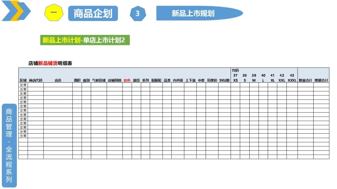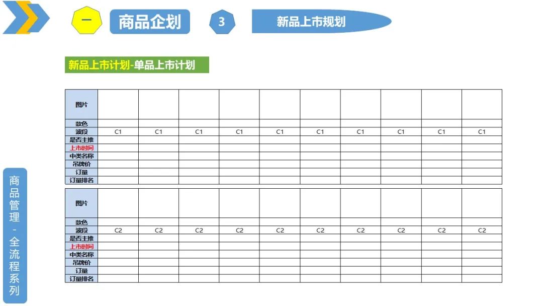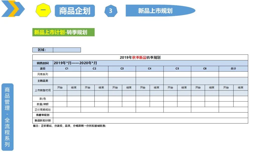1、波段、品类、单款上市时间规划;转季时间规划;波段、品类、单款销售周期规划(可以细分到区域或者单店)