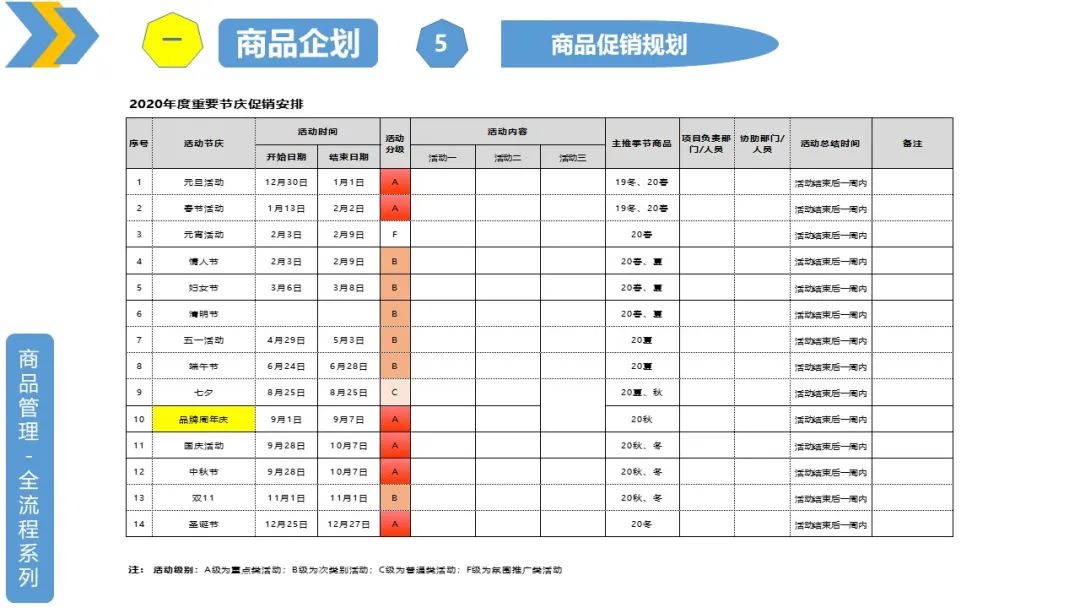 概述:商品全年运营规划:主要是商品部门的主要工作规划及结合相关部门的工作内容,为了相互配合及有效衔接,针对全年的重点工作而制定的不同时间需要做的工作内容和安排