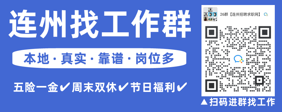 应聘方式:长按识别下方二维码,进入【连州微社区】招聘详情页,投简历后即可直接打电话约面试。或添加平台客服咨询, 微信号:lzzp0763