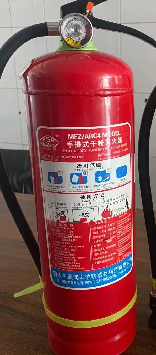 5、左手把持喷粉枪管托,右手把持枪把,用手指扳动喷粉开关,对准火焰喷射,不断靠前左右摆动喷粉枪,把干粉笼罩在燃烧区,直至把火扑灭为止。
