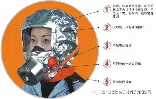 防毒面具由面罩和滤毒罐组成,一旦遇到火灾,只要卡开面罩套上即可正常呼吸,这种逃生面具是一次性产品,足够逃生使用。