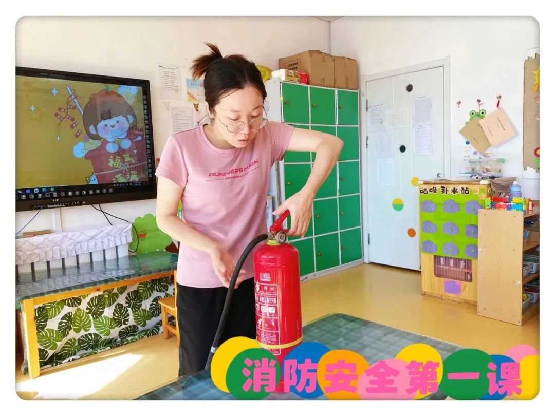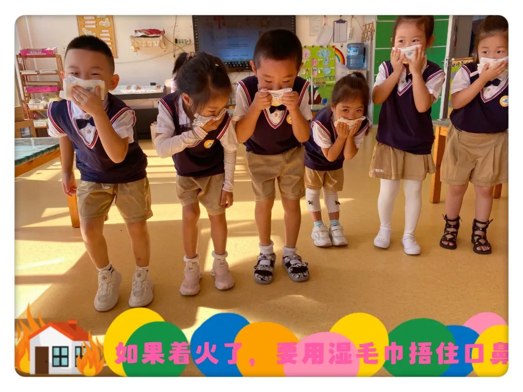 为了增强幼儿的消防安全意识,提高幼儿自救能力,大二班的小朋友在班级里开展了一个消防演练。小朋友们分别模拟了如何正确使用灭火器、发生火灾后如何逃离现场等。