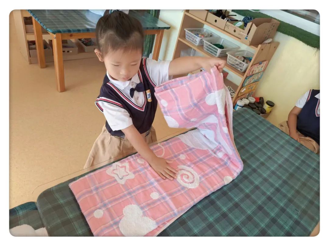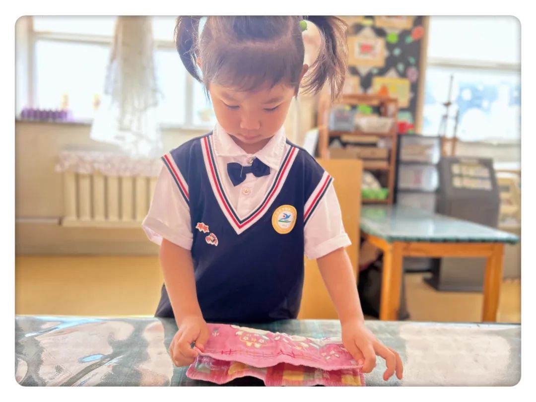 现在我是大班的哥哥姐姐了,我会自己叠被子。