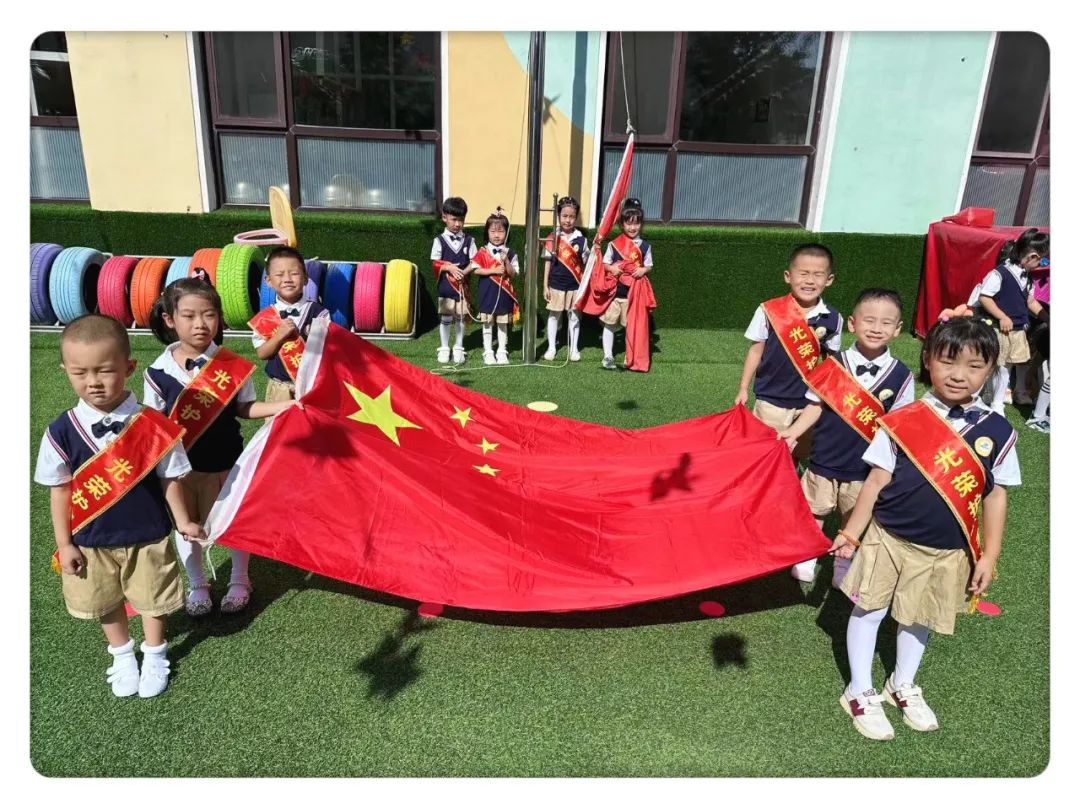 五星红旗是中华人民共和国的标志,代表祖国的光辉形象。带着敬仰和爱戴之情,大一班的小朋友们迈着铿锵有力的步伐向我们走来,爱国主义的种子在孩子们稚嫩的心中生根发芽。