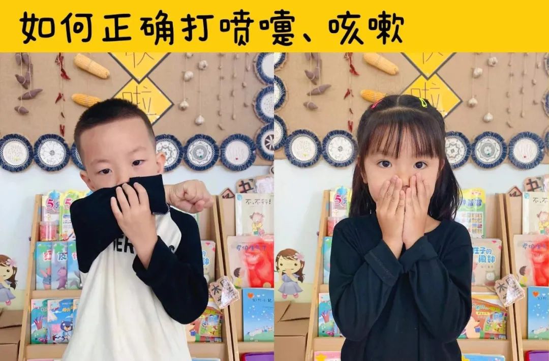 秋季气温多变,幼儿容易感冒着凉,小朋友们还记得怎样正确咳嗽和打喷嚏吗?快让我们重温一下吧!