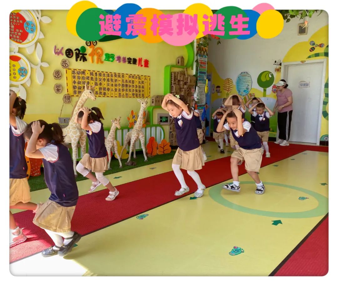应立即组织幼儿快速下楼,不要停留,尽可能迅速逃离建筑物,转移到空旷地带;来不及逃出时,应尽量躲在楼梯间墙角或支撑结构较多的空间部位。