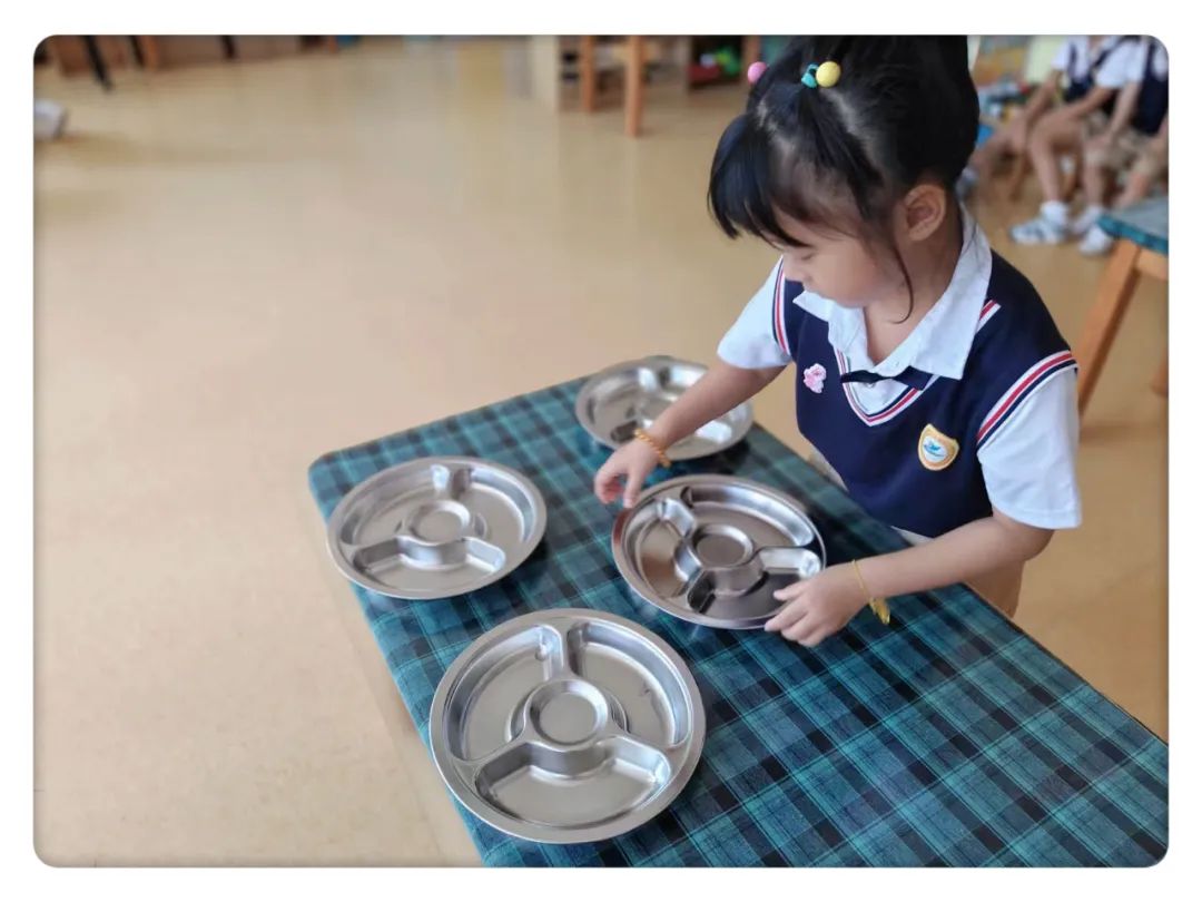 我们是今天的值日生要吃午饭咯!我来帮大家分餐具