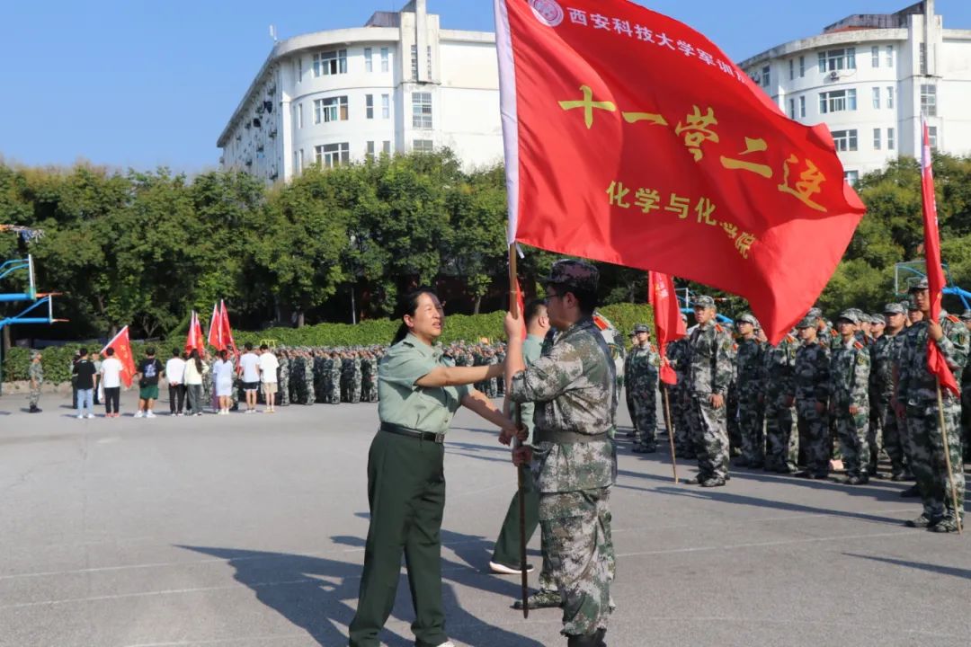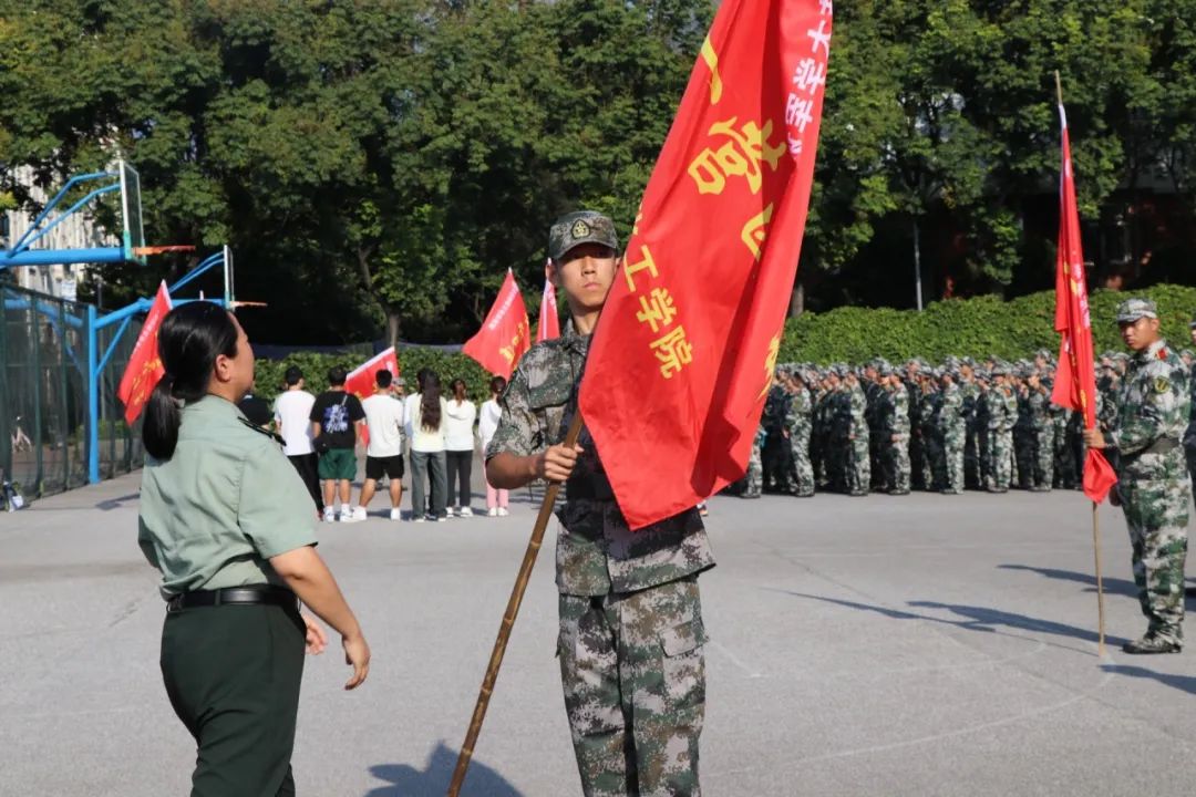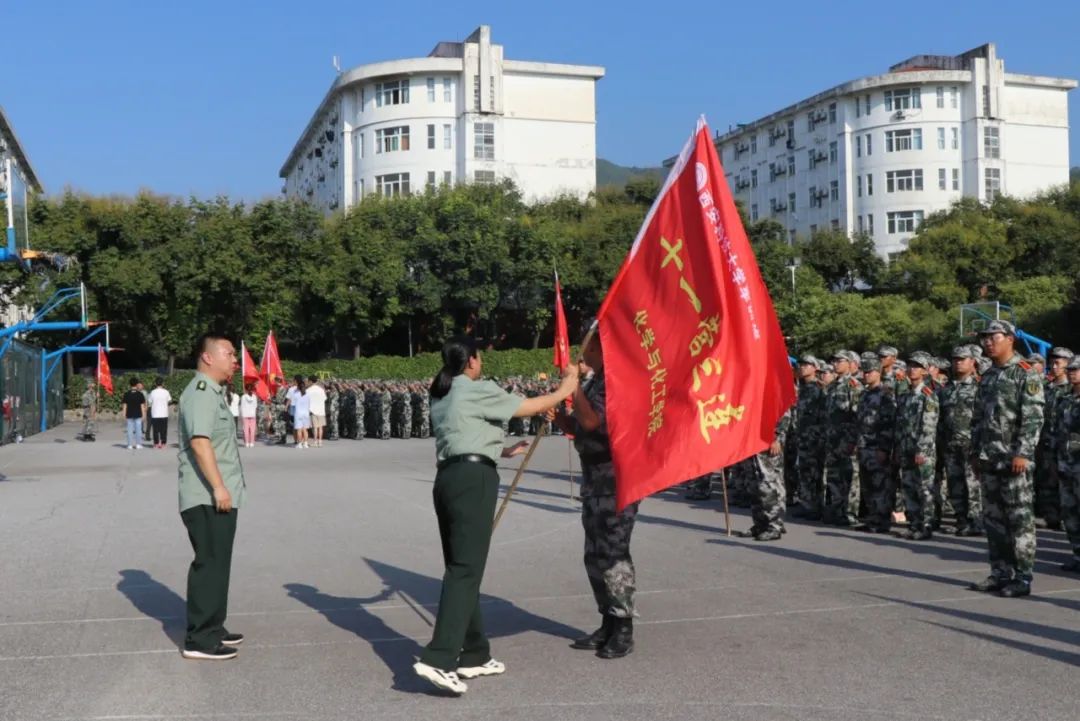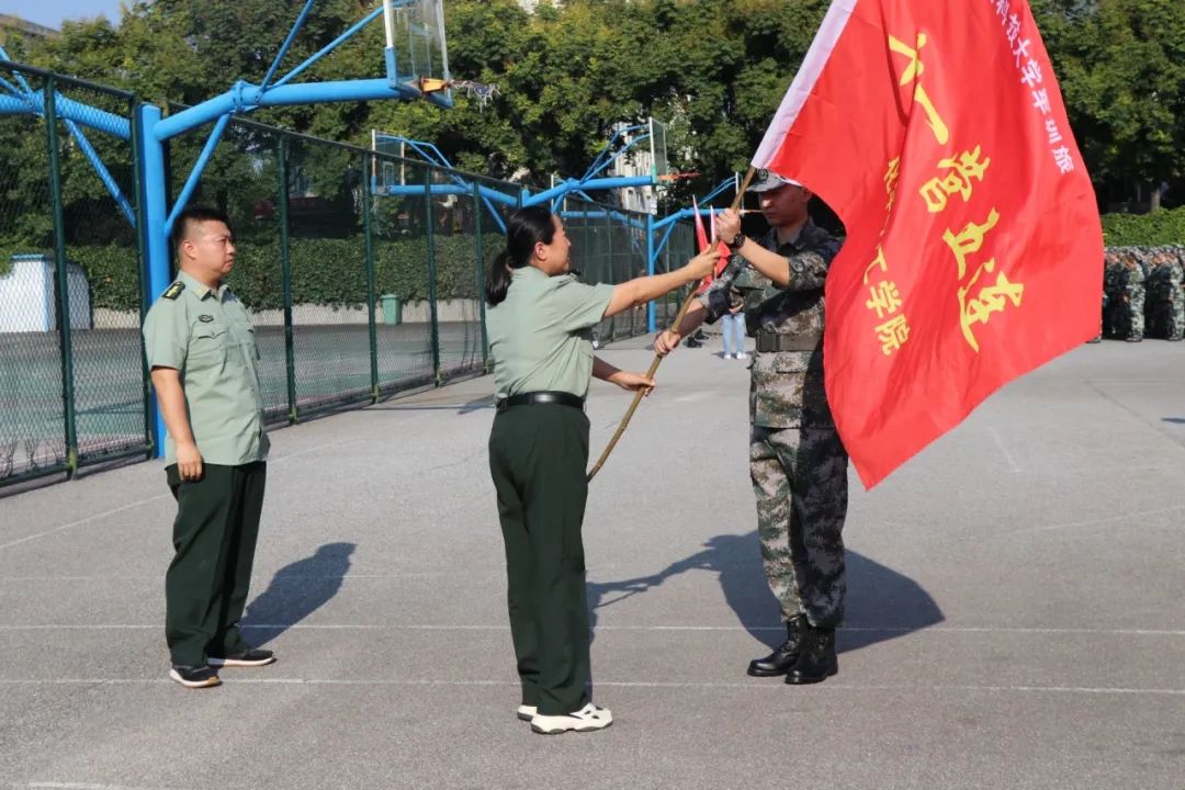 随后,田园书记向各连军训队伍授旗。旗帜就是方向,就是力量。飘扬的旗帜引领前进的方向,远大的理想铸就精彩与辉煌。