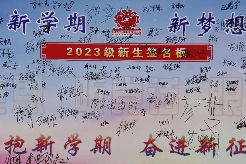 2023级新生在签名板上签下了自己的名字,签下了“感党恩 听党话 跟党走”的承诺,也签下了对即将到来的中职三年生活的期盼。