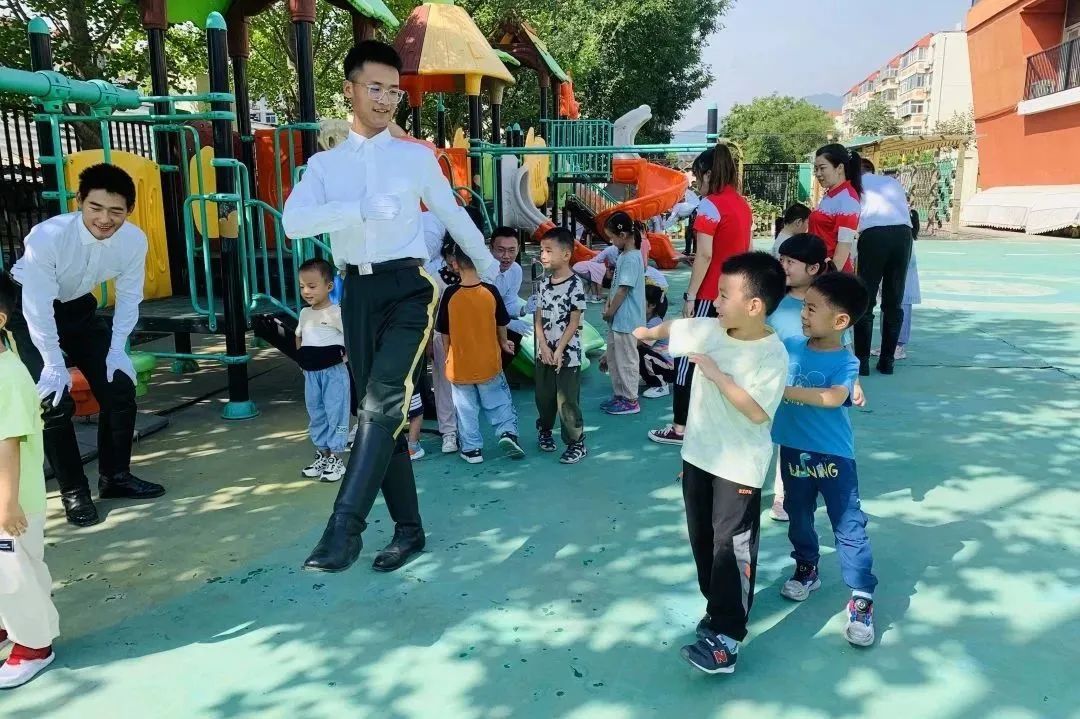 升旗仪式结束后,实践团成员教小朋友们队列动作,并且教导他们要敬畏国旗、热爱国旗、守卫国旗。在与小朋友互动的同时,也加深了他们对国旗的认识、强化了爱国情感。国旗飘扬,拨动着中国人最鲜明炙热的爱国情愫,而我们要做的,就是将这份情感传递下去。