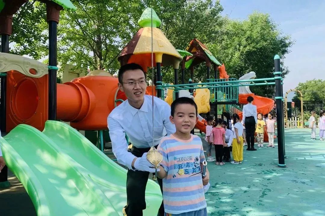9月1日上午,实践团成员身着礼服,前往南口镇中心幼儿园举行升旗仪式。升旗仪式上,实践团成员出色完成升旗任务,小朋友们也都立正站好,认真参与、学习了整个升旗仪式。