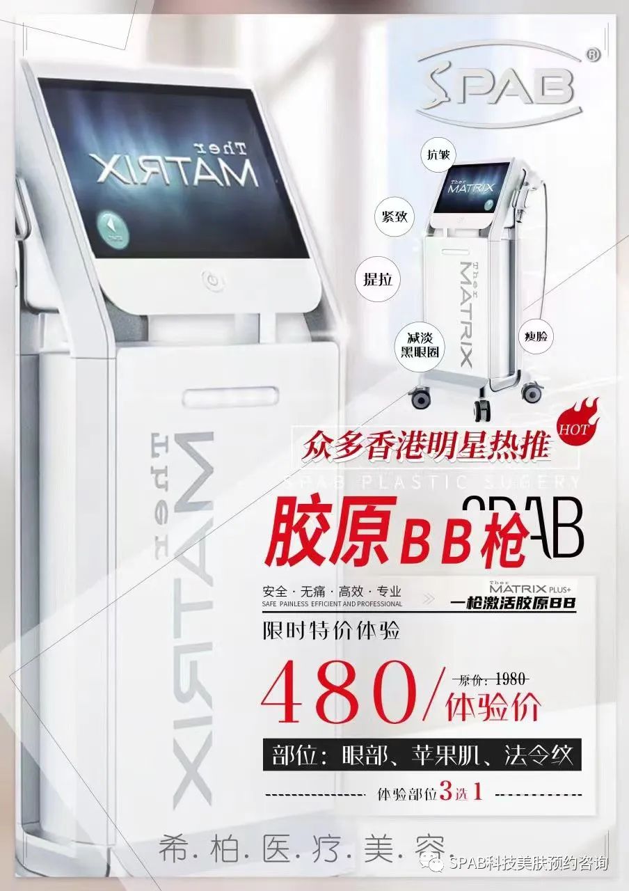 高端仪器介绍: 1. 胶原BB枪:胶原BB枪——肌肤重现Q弹弹、饱满、紧致、透亮~(案例合集) 胶原BB枪是一种采用射频技术的美容仪器,其主要作用是通过高频电磁波对皮肤进行加热,刺激胶原蛋白的增生,从而提高皮肤的紧实度和弹性,减少皮肤松弛和皱纹。 【针对皮肤类型】脸部凹陷,胶原蛋白流失型的松弛感。
