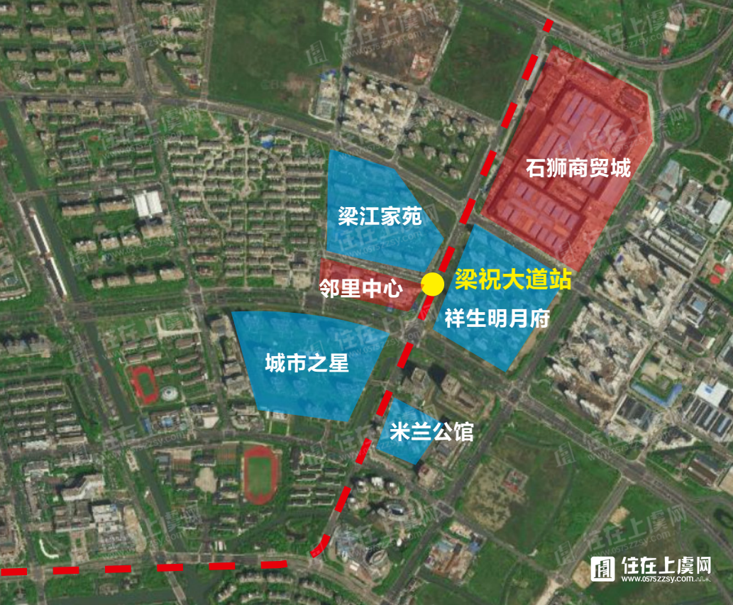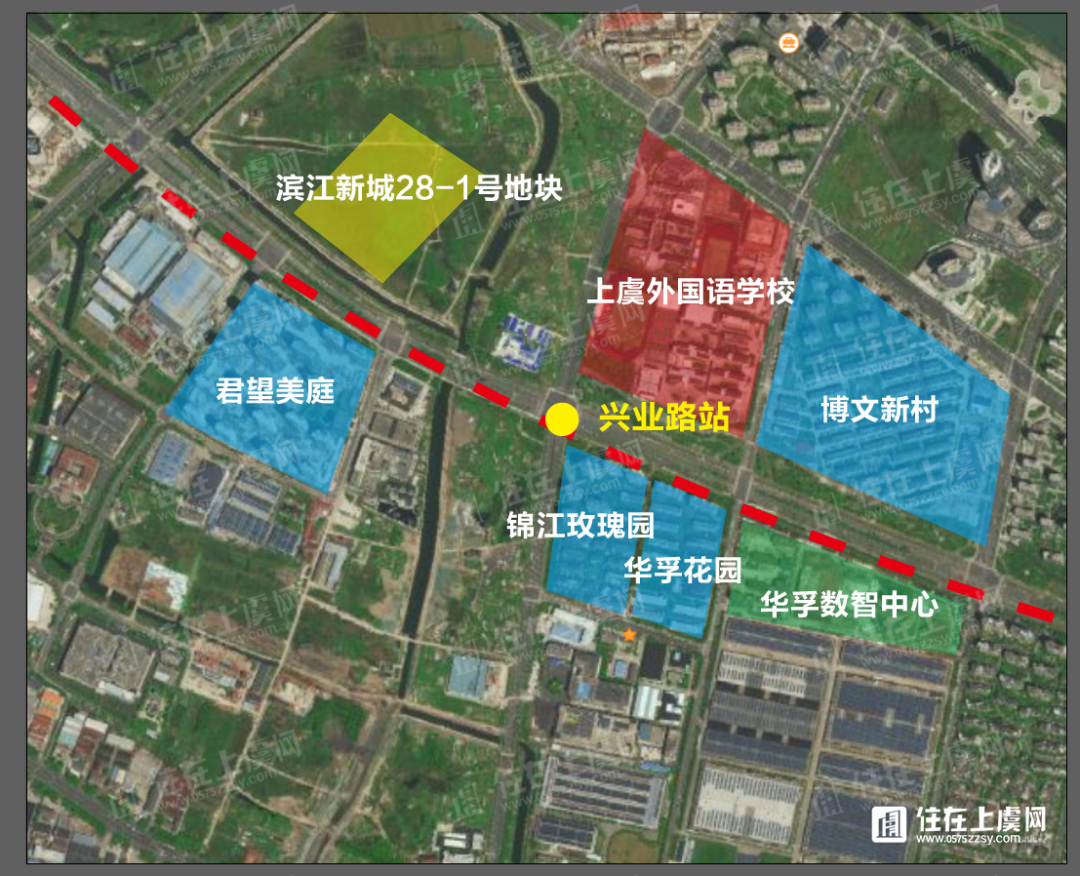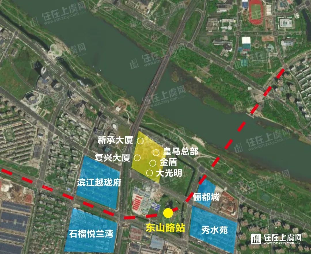地铁选址红线图中涉及上虞段的站点及周边小区信息如下: