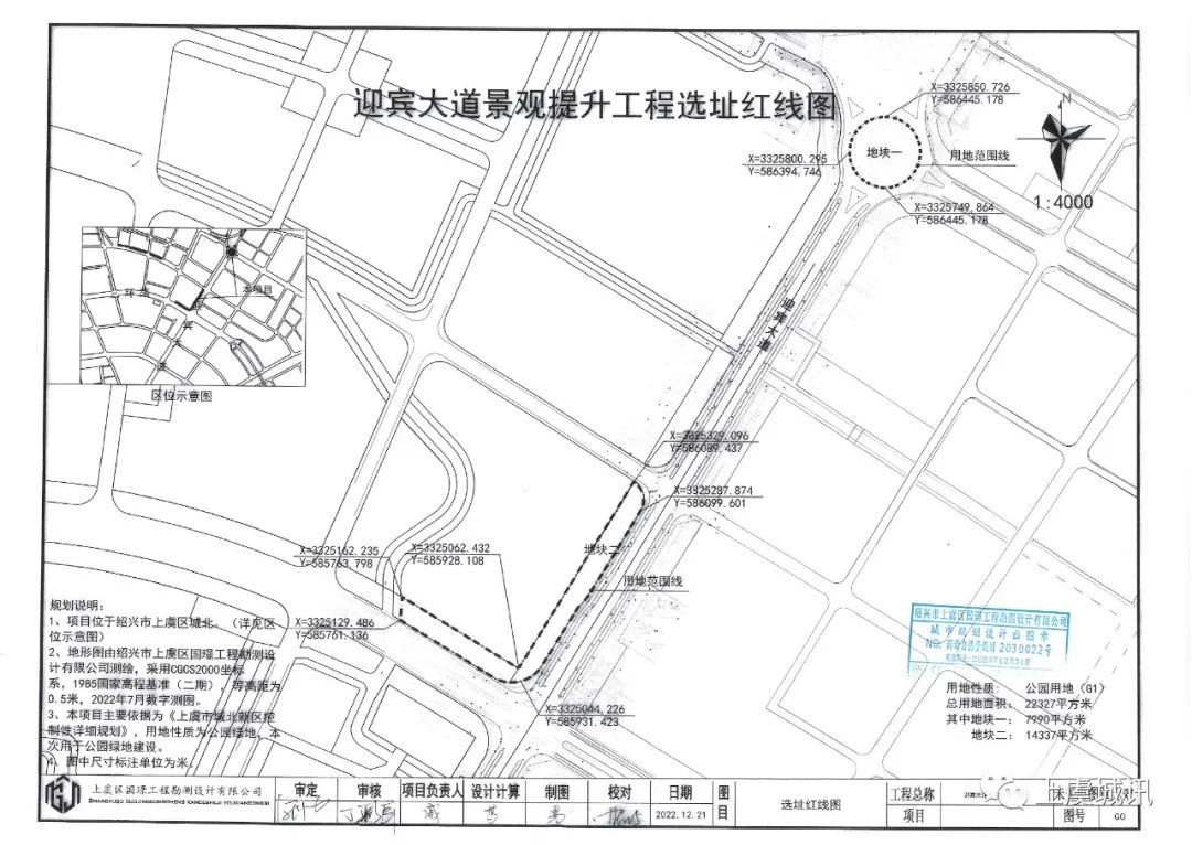 迎宾大道景观提升工程已由绍兴市上虞区发展和改革局备案批准建设(项目代码:2212-330604-04-01-266157),建设资金来自自筹 ,出资比例为100%,项目业主为绍兴市上虞城乡生态环保发展有限公司,招标人为绍兴市上虞城乡生态环保发展有限公司,委托代理机构为浙江宇康工程管理咨询有限公司。项目已具备招标条件,现对该项目的迎宾大道景观提升工程的施工进行公开招标。2.1项目概况:本项目投资估算1803.81万元,工程概算 万元,工程招标建安造价约940万元,建设规模:主要对迎宾大道西侧与祥生明玥府东侧之间L形狭长地块绿化建设,建设内容分别是:祥生明玥府小区东侧、南侧打造全年龄段的活动场地建设,配套驿站、园路的建设和沿线林相与节点花镜的打造,建设地点:上虞区百官街道。2.2招标范围:施工图及工程量清单范围。本次招标建安工程造价:约940万元。
