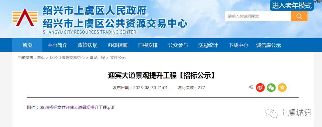 早在此前,迎宾大道景观提升工程得到了获批,而今天,该项目已经开始施工招标了,