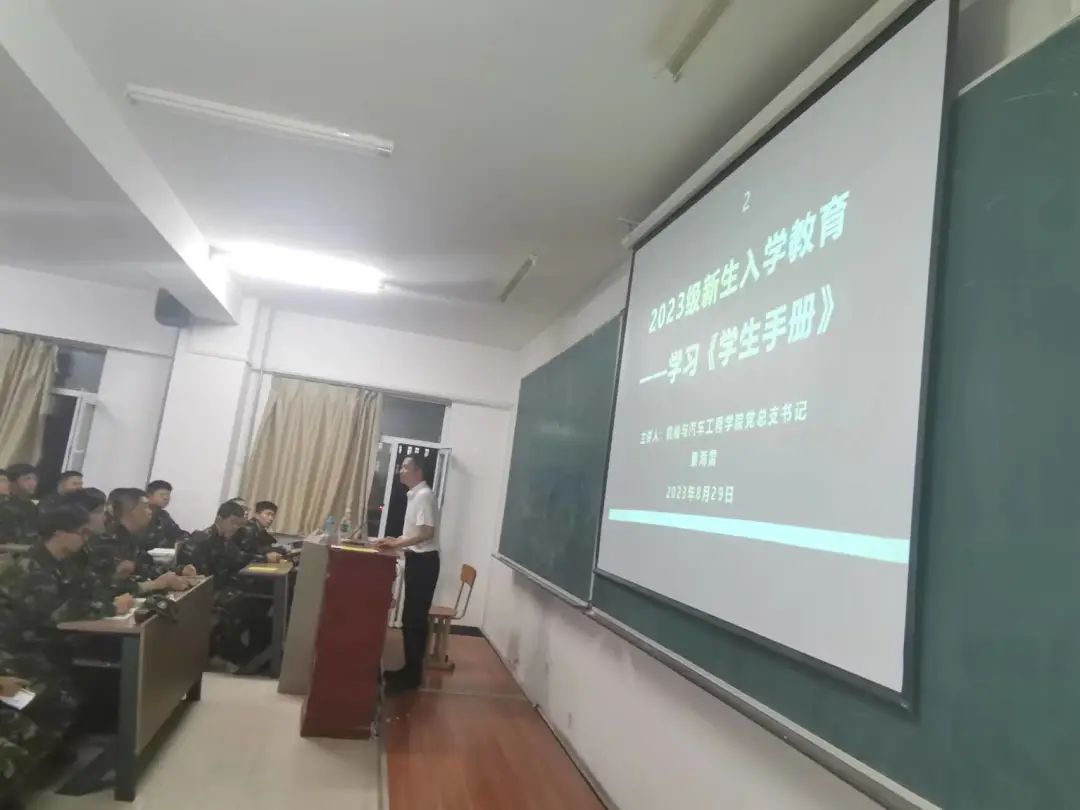为了使我院新生深入了解校规校纪,规范行为习惯,增强规则意识,使同学们更快地适应新的校园生活。机械与汽车工程学院于2023年8月29日在教三410召开了《学生手册》培训大会,本次会议由机械与汽车工程学院党总支书记秦海雷主讲,全体23级学生参加。