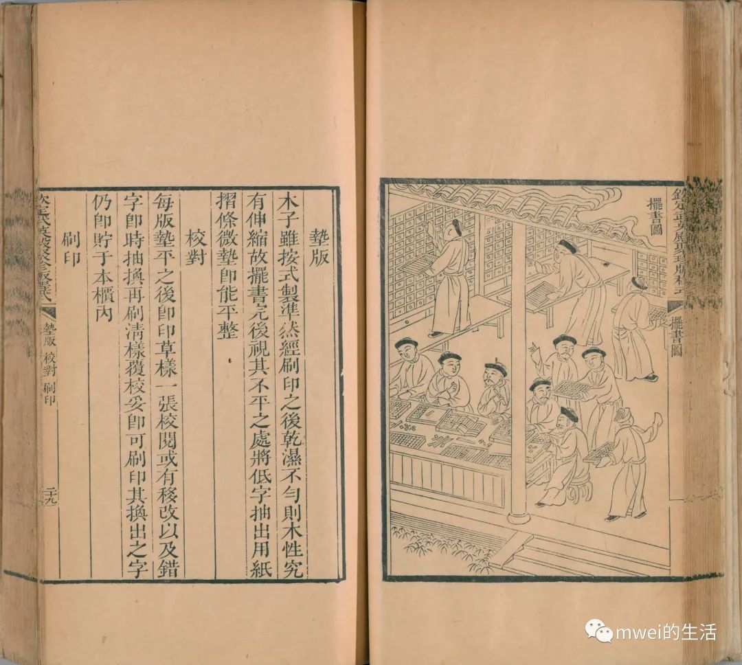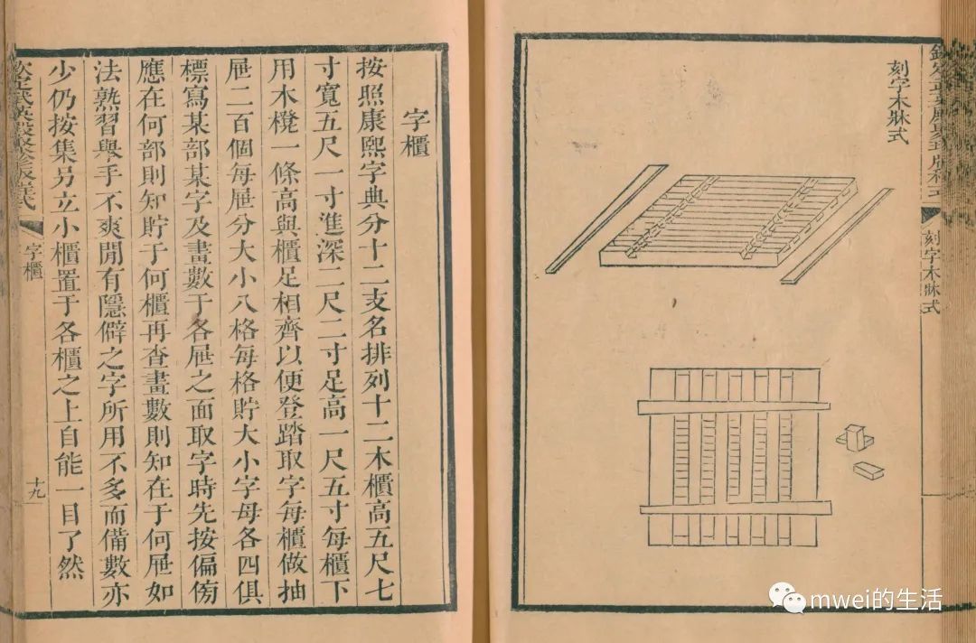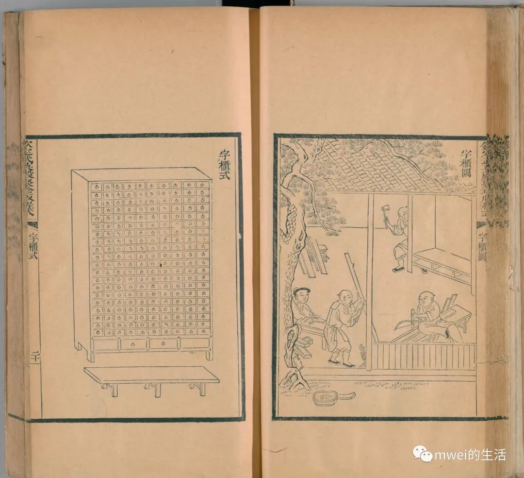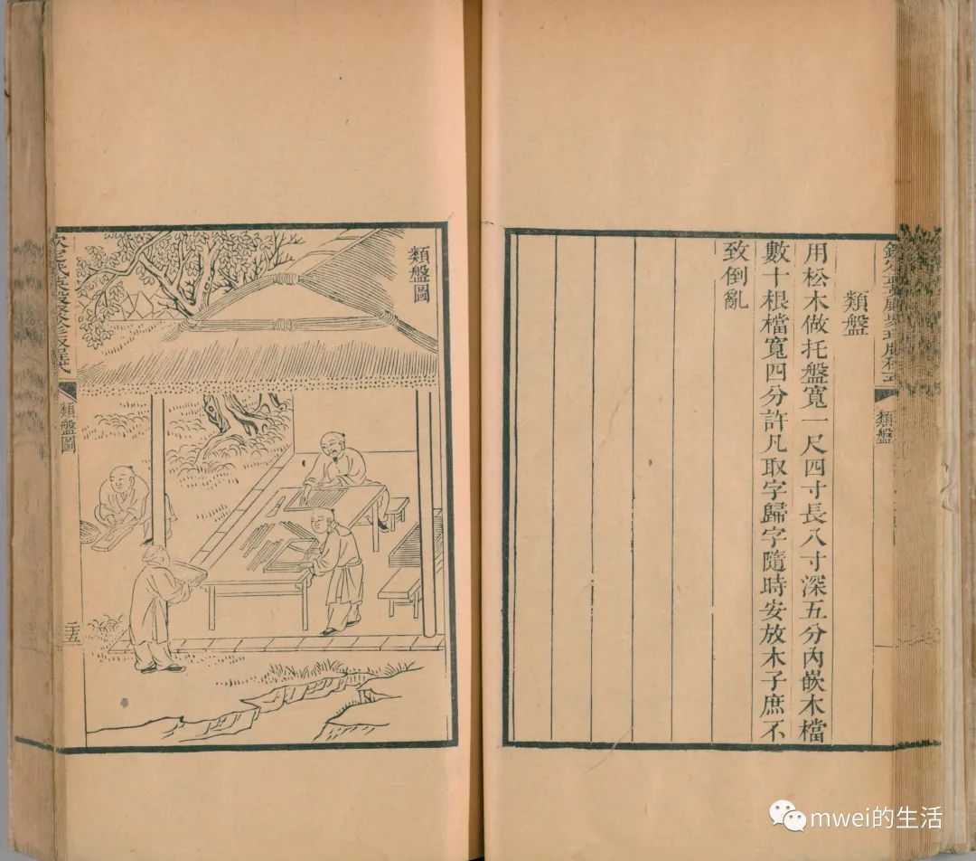 《武英殿聚珍版程式》中有一些图片说明,包括造字的方法,排版的工具,木活字的存放等,但没有如何刷印和装订的图示。