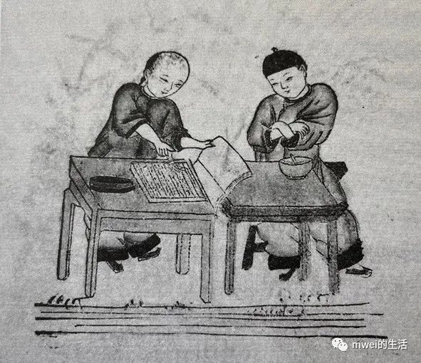 古代工匠社会地位低下,文人对技术和生产也无意记录,具体如何操作,已很难考证。好在清末海通后,西方人了解中国社会的兴趣大增,催生了反映中国人生活百态的广州十三行外销画,印刷也被绘入图中。